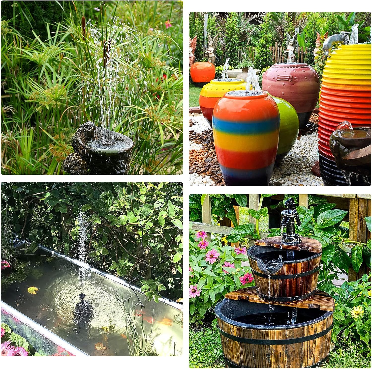 - [✔DIY Solar Water Pump Kit]: DIY solar water pumps kit, which contains solar fountain kit, can be made into a bird bath fountain and fish tank water circulation tools. Help birds and fish to maintain a vibrant ecosystem. Replace the nozzles with water pipes to make different water feature that will make your garden look comfortable and inviting.